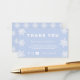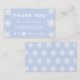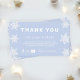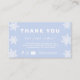 Personalize este cartão de marketing comercial sazonal em floco de neve. Isso é perfeito para um negócio de comércio eletrônico, como uma butique, loja Etsy ou qualquer outra pequena empresa. Ele apresenta a frase "Obrigado" e tem texto personalizável para explicar mais detalhes. Este produto expressa a apreciação do cliente e incentiva os compradores a seguirem sua empresa nas mídias sociais com as informações fornecidas ao lado dos ícones de contato do Facebook, Instagram e YouTube.