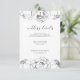 Um elegante design de flores preto e branco com lindas peônias, perfeito para um casamento chic e moderno. Totalmente personalizável: você pode facilmente mudar a cor do texto ou das flores para se adequar ao seu gosto.