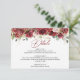 Design de tendências elegantes para todos os Boho style Wedding. O design apresenta rosas de marsala vermelhos profundos com aquarelas e flores escamosas misturadas com folhas frescas de eucalipto verde com faíscas de ouro e tecidos elegantes em moldura de ouro. Fonte moderna do script de tipografia. Contacte-me para obter itens correspondentes ou para personalização, Rosas emborrachados ©