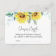 Sorteio de fraldas no chá de bebê com um cartão "Traga um Pacote de Fraldas Qualquer Tamanho" decorado com girassóis aquarela.