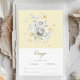 Este elegante cartão de RSVP floral amarelo é o complemento perfeito para a sua suíte de casamento. Com rosas brancas, sotaques dourados e um design moderno minimalista. Inclui espaço para nomes de convidados, resposta de presença e requisitos dietéticos. Totalmente personalizável para seus detalhes!