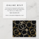 Um monograma moderno brilha com anéis de casamento dourados entrelaçados e um fazer de texto personalizado este é um novo convite clássico para casamento com texto em branco e preto limpo. Personalize todo o texto deste cartão de inserção de RSVP on-line e ajude a direcionar seu convidado para o site do casamento enquanto salva algumas árvores e dinheiro no correio.