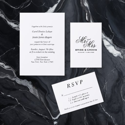 O guião clássico Sr. e Sra. Carteira de casamento. Modelo de design tradicional para informações adicionais, como endereço de site. Excelente do casamento tradicional em qualquer época do ano. design de tipografia eterno a preto e branco. Layout vertical.