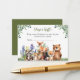 Elevem o entusiasmo do seu Chá de fraldas temático de Animais da Floresta com nossa adorável Fralda Cartões Raffle! Encorajem os hóspedes a juntarem-se à diversão florestal trazendo um bando de fraldas, e em troca, eles podem ganhar um encantador prêmio! Apresentando lindos animais florestais, estas cartas complementam sem problemas a nossa Coleção Woodland. Deixem as doações de fralda mergulharem como uma chuva suave no coração da floresta encantada! Explore nossos pacotes exclusivos de coleta do Woodland para obter uma configuração de chá de fraldas fácil e deliciosa. Faça suas doações de fralda parte da magia da floresta! Compre agora por um chá de fraldas memorável.