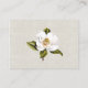 Cartão de cerimônia de casamento elegante feito em um olhar de roupa de marfim, na frente e atrás, com uma linda flor branca de magnólia, nas costas. O texto preto, na frente, está pronto para personalizar a sua recepção de casamento. Amável adição ao nosso convite e produtos de Casamento da Bela do Sul da China, Magnolia.
