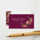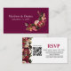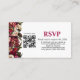 Adicione significado e elegância ao seu conjunto de casamento com este cartão de RSVP burgundy e rosa, apresentando crisântemos ricamente detalhados - flores há muito associadas à alegria, longevidade e devoção. Perfeito para casamentos de outono ou românticos, este cartão inclui espaço para o seu código QR personalizado, permitindo que os convidados respondam digitalmente e acessem o site do seu casamento para detalhes da recepção, viagem e hotel.