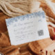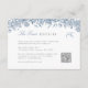 Uma placa de detalhes do casamento da chinoiserie com um código QR que apresenta gráficos bonito de toile de jouy com uma paleta de cor azul suave e empoeirada e uma fonte de caligrafia. Perfeito para um casamento de primavera ou verão e você pode combiná-lo com qualquer coisa na coleção da FLORIA para um olhar coeso.
