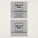 Cartão de visita quadrado que você pode personalizar para colocar seu nome de negócios. Você pode incluí-lo em seus materiais de marketing para anunciar sua empresa ou promover seu nome de marca para os clientes. Personalize-o e inclua-o em materiais que você usará para criar reconhecimento de nome de marca. Você também pode usá-lo como um acessório do seu material de embalagem. A cor é a cinza e a cor da fonte é preta. Para personalizar este cartão de visita, carregue o logotipo da sua empresa, digite o nome da sua empresa ou empresa, número de telefone, e-mail e site ou página de mídia social. Verifique a aparência após carregar o logotipo e digitar textos. Se a aparência lhe agrada, você pode colocar seu pedido agora. Se você precisar redimensionar e mover o logotipo e os textos para o ajustado neste cartão de visita ou em outras formas e tamanhos que você escolher, mude na ferramenta design. Você também pode fazer outras alterações de acordo com sua preferência na ferramenta design, como alterar a cor do cartão de visita, a cor da fonte e o estilo da fonte.