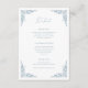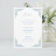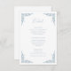 O nosso cartão de cerimônia de detalhes do casamento apresenta caligrafia moderna e uma fronteira botânica azul empoeirada para uma forma elegante de informar os seus convidados sobre os detalhes do seu próximo casamento.