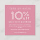 Este é um cartão de visita de venda de promocional que contém a frase "tome um extra" Você pode ajustar parte do texto conforme necessário para adicionar informações sobre seu produto, oferecer um desconto especial para repetir clientes ou solicitar uma revisão no seu site ou nas mídias sociais. Você pode embrulhar este cartão em ordens adquiridas on-line para encorajar seus clientes a comprar durante o período de venda do promocional.
