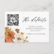 O Cartão de Detalhes de Casamento Rústico de Outono com a adição de um código QR inteligente eleva a conveniência, permitindo que os convidados acessem informações adicionais do evento com apenas um simples scan. Perfeito para compartilhar detalhes do local, ou uma mensagem surpresa. Itens correspondentes em nossa Coleção de Casamentos Rústicos de Outono