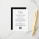 Placa de gabinete Detalhes do casamento preto e branco - Inserção do código QR do retrato. Elegante e moderno, este cartão de cercado preto e branco de 3,5" x 5" foi projetado para manter seus convidados informados com estilo. Apresentando uma frente branca nítida com texto preto e um inverso preto sólido, esta inserção orientada a retratos inclui três seções claramente definidas: Recepção, Alojamentos e Website — cada uma destacada com legendas em negrito e em itálico e com interpontes decorativas para um toque refinado. Um título manuscrito, "The Details" (Detalhes), adiciona uma tendência, talento pessoal no topo. Abaixo, um código QR personalizável permite que você faça um link direto para o site do seu casamento, fazer que seja fácil para os hóspedes acessar instruções, informações de hotel e detalhes de recepção em uma única digitalização. Perfeito para casamentos minimalistas, casais modernos e eventos de gravata negra. Personalize o seu hoje e faça com que o planejamento não seja fácil para seus convidados