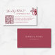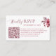 Cartão de RSVP de casamento elegante e moderno com um design floral burgundy romântico e um código QR conveniente para respostas online fáceis. Perfeito para casais que desejam uma maneira elegante e prática de coletar RSVPs de convidados, compartilhar detalhes do casamento e simplificar o planejamento. Este cartão RSVP de dupla face combina perfeitamente com conjuntos de convites de casamento clássicos, de outono, inverno e formais. Totalmente personalizável para combinar com as cores e detalhes do seu casamento.