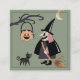 Feliz Dia das Bruxas de um professor ou treinador ou amigos. Adicione o seu nome à parte de trás deste cartão de diversão, com uma bruxa vassoura, um gato preto e um jack-o-lanterno pendurados numa árvore assustadora na frente e uma maçã e guloseimas nas costas.