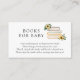 Um cartão de inserção de solicitação de livro para o chá de fraldas. Apresentando girassóis e livros e poema: "UMA PEQUENA SOLICITAÇÃO, ESPERAMOS NÃO MUITO DURO POR FAVOR TRAZER UM LIVRO EM VEZ DE UM CARTÃO QUE ELES CHERARÃO O LIVRO, BEM AMADO OU MARCA NOVO POR FAVOR, ASSINE O DENTRO COM UMA MENSAGEM DE VOCÊ!"