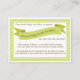 Um poema encantador solicita que os convidados tragam um livro para o futuro bebê para começar a nova mãe com uma biblioteca de livros infantis amados. Basta inserir este dentro de cartão doce no envelope do chá de fraldas, o design geométrico verde e branco neutro é perfeito para coordenar com quase qualquer convite para chás de fraldas também.