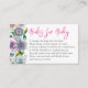 Descubra o mundo encantador do nosso elegante livro para o cartão de bebê, uma adição deliciosa a qualquer chá de fraldas. Cada cartão é adornado com um padrão floral de aquarela lindamente reproduzido em tons pastéis de rosa, lavanda, azul e amarelo cremoso. Esta bela obra de arte captura a essência serena e nutritiva da natureza, fazer-a uma escolha perfeita para acolher uma nova vida no mundo. O reverso do cartão apresenta um pano de fundo lavanda calmo, oferecendo um toque de elegância pacífica. Este cartão não é apenas um convite; é uma lembrança, uma lembrança de um momento precioso. Para explorar a faixa de cheios de nossos cartões de solicitação de livro, visite www.zazzle.com/dotellabelle. Aqui, você encontrará uma coleção que completa perfeitamente esta carta, toda projetada com o toque único e charmoso de Victoria Grigaliunas do Do Diga A Belle. Cada peça é um testemunho da beleza e magia de novos começos.