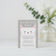 Cartão de cerimônia de solicitação de livro doce para a festa de chá de fraldas do tema do gato. Ilustração de um gatinho branco fofo com um sorriso doce no rosto. O fundo é cinza. Excelente para a menina e o chá do bebê. Textos são editáveis online.