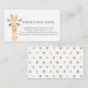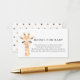 Livros para bebê inserem cartão com uma ilustração de aquarela de uma girafa. Um cartão de solicitação de livro para chá de bebê. "UM PEQUENO PEDIDO, ESPERAMOS QUE NÃO SEJA DEMASIADO DIFÍCIL