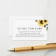 Um cartão de inserção de solicitação de livro para o chá de fraldas. Apresentando girassóis e poema: "UMA PEQUENA SOLICITAÇÃO, ESPERAMOS NÃO MUITO DURO POR FAVOR TRAZER UM LIVRO EM VEZ DE UM CARTÃO QUE ELES CHERARÃO O LIVRO, BEM ADORADO OU MARCA NOVO, ASSINE O DENTRO COM UMA MENSAGEM DE VOCÊ!"