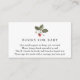 Um cartão de inserção de solicitação de livro para o chá de fraldas. Apresentando uma ramificação de morango de aquarela com o poema: "UMA PEQUENA SOLICITAÇÃO, ESPERAMOS NÃO MUITO DURO POR FAVOR TRAZER UM LIVRO EM VEZ DE UM CARTÃO QUE ELES IRÃO CHERIFICAR O LIVRO, BEM AMADO OU MARCA NOVO, POR FAVOR, ASSINE O DENTRO COM UMA MENSAGEM VOCÊ!"