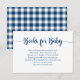 Este Marinho de xadrezes de búfalos azuis para cartão de bebê é perfeito para o seu chá de fraldas. Envie esses cartões de inserção de chá de fraldas fofos com seus convites para chuveiros de bebê para pedir ajuda para construir a biblioteca do seu bebê. Que maneira fofa para os pais e o novo bebê se lembrarem dos convidados do chá! O design simples e rústico apresenta a verificação de bufalos azuis e brancos e a fonte azul do script.