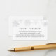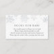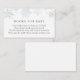 Um cartão de inserção de solicitação de livro para o chá de fraldas. Apresentando flocos de neve prateados e poema: "UMA PEQUENA SOLICITAÇÃO, ESPERAMOS NÃO MUITO DURO POR FAVOR TRAZER UM LIVRO EM VEZ DE UM CARTÃO QUE ELES CHERARÃO O LIVRO, BEM AMADO OU MARCA NOVO POR FAVOR ASSINE O DENTRO COM UMA MENSAGEM DE VOCÊ!"