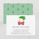 Um cartão de inserção de solicitação de livro para o chá de fraldas. Apresentando um carro vermelho com uma árvore de Natal e poema: "UMA PEQUENA SOLICITAÇÃO, ESPERAMOS NÃO MUITO DURO POR FAVOR TRAZER UM LIVRO EM VEZ DE UM CARTÃO QUE ELES CHERARÃO O LIVRO, BEM AMADO OU MARCA NOVO POR FAVOR ASSINE O DENTRO COM UMA MENSAGEM DE VOCÊ!"