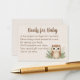 Este cartão de pedido "Livros para o Bebê" de coruja-precioso ajuda a construir uma biblioteca para a pequena. É um chá de fraldas essencial para encorajar os hóspedes a trazer um livro em vez de um cartão descartável. O gabinete é totalmente personalizável com seu poema ou mensagem preferido e facilmente personalizado para complementar o seu conjunto de convites de cheio. Um chá doce e duradouro para um gênero neutro ou matemático.