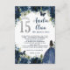 Informações Marinho Azul Prata Floral Quinceañera 15 Cartão de