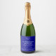 Etiqueta de garrafa de vinho espumante personalizável para venda dos seus produtos. Material de embalagem que contenha apenas informações mínimas. É apropriado para produtos que não exigem muitas informações ou informações completas. As cores das etiquetas são textos claros azuis e brancos sobre fundo azul. Para personalizar esta etiqueta, carregue o logotipo da sua empresa ou uma imagem do seu produto, digite o nome do produto, o nome da empresa, o endereço, o número de telefone, o email, o site ou a página de mídia social, o conteúdo do seu produto e os ingredientes do seu produto. Após carregar imagens e digitar textos, verifique a aparência. Se a aparência lhe agrada, você pode colocar seu pedido agora. Se você precisar redimensionar e mover a imagem e os textos para o ajustado nesta etiqueta, mude na ferramenta design. Você também pode fazer outras alterações na ferramenta design de acordo com a aparência deste rótulo que você prefere, como alterar a cor do plano de fundo, a cor da fonte e o estilo da fonte. Personalize-o e inclua-o em suas estratégias de marketing para anunciar seu produto comercial ou promover seu nome de marca de produto para os clientes. Rótulo de produto personalizável que você pode usar para criar reconhecimento de nome de marca.