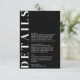 Informações Mínimo de Detalhes do Casamento Preto - Cartão de