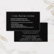 Ajude seus clientes a cuidar de seus itens recém-comprados com este cartão de lavanderia. Você adicionará instruções de lavagem que esperamos que elas sigam para prolongar o uso de seu novo artigo de roupas ou joias. Você pode editá-lo conforme necessário. Em fundo preto com texto branco fácil de ler, ele estará atraindo os olhos em sua embalagem. Na frente é onde você listará suas recomendações. Ao contrário, você adicionará seu logotipo (exclua isso se não tiver um logotipo), uma palavra simples de obrigados e depois seus negócios e detalhes de contato. Novamente, personalize isso conforme necessário. Se precisar de assistência, entre em contato com o designer que pode ajudá-lo.