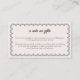 Projetado para combinar com nossa Coleção de Bordas Recortadas, este cartão de acompanhamento de presente minimalista apresenta um design clássico com um toque único - a borda recortada é única e certamente adicionará um toque retrô a este convite moderno. Se você deseja chamar a atenção dos seus convidados com este design exclusivo, esta suíte é perfeita para você. Para personalização avançada deste design, por exemplo, alterar o layout, a fonte ou o tamanho do texto, clique no botão "PERSONALIZAR" acima. Por favor, entre em contato comigo para qualquer dúvida!