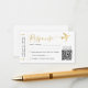 Cartão de resposta MINI RSVP de passagem de embarque de avião dourado e preto com letra elegante, com código QR, um complemento perfeito para um convite de recepção de casamento com tema de viagem aérea ou destino para o casal que ama viajar e está se casando no exterior.