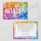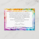 Apresentando a pequena placa de cerâmica da "Eethal Bloom Collection", uma adição encantadora e elegante que transmite delicadamente os sentimentos do casal sobre preferências de presentes enquanto melhora a beleza geral de sua celebração. A frente do cartão mostra a captação de trabalho de arte de tinta alcoólica da "Eethal Bloom Collection", com matizes giratórios de blues, roxas, vermelhos, laranjas e verdes. Esse cenário vibrante e artístico enquadra perfeitamente a legenda "Nota sobre GIFTS" em um roteiro elegante, definindo um tom pensativo e convidativo para os convidados. Voltar ao verso da carta revela um fundo branco sereno, sutilmente adornado com a continuação do trabalho de arte etéreo no lado esquerdo. Esse delicado contraste com as vibrantes imagens frontais oferece um design harmonioso e, ao mesmo tempo, proporciona espaço amplo para que o casal personalize sua mensagem. Aqui, eles podem compartilhar suas preferências de presentes, expressar gratidão, e fazer os convidados se sentirem apreciados e incluídos em seu dia especial. Essa personalização cuidadosa garante que os hóspedes entendam os desejos do casal enquanto são abraçados no calor de seus sentimentos. Como parte da "Ereal Bloom Collection", este cartão de cercamento serve tanto como uma ferramenta prática de comunicação quanto como um reflexo do estilo único do casal e da vibrante e artística beleza do seu tema de casamento. Com a sua mistura de elegância, personalização e design cativante, esta carta acrescenta um toque sofisticado a todos os aspectos da celebração do casamento.