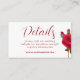 Detalhes do casamento / site que contém cartões pequenos para os convidados diretos a um site de casamento para mais informações. Estilo de fonte impresso magro em vermelho em branco. O reverso é vermelho sólido. A alteração do tamanho desta placa pode substituir o texto para garantir que ela ajustado corretamente.