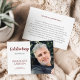 Este elegante cartão de oração fotomemorial, com texto vermelho escuro, é uma bela maneira de lembrar um ente querido durante a celebração do serviço de vida. Isso faz uma bela manutenção que seus convidados podem exibir em sua casa depois.