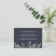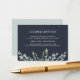 Vire essas cartas para seus convites para deixar os convidados da cidade saberem de qualquer acordo de hotel ou códigos de grupo. Projetados para coordenar com nossa coleção de casamento do Winter Sage, os cartões azuis de marinho profundo têm uma inscrição branca com uma borda de folhagem botânica aquática e verde.