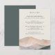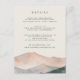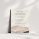 Guie seus convidados com facilidade usando este elegante cartão de detalhes de casamento da coleção Sierra Dusk pela Redwood & Vine Design Co. Projetado com uma paisagem de montanha de cor aquosa em pincel, pêssego e tons de ardósia, este cartão fornece espaço para acomodações, direções e outras informações essenciais. Um belo e funcional complemento a qualquer suíte de convite elegante ou inspirado no sudoeste.