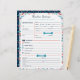Projetamos esta folha de informação para cães e animais de estimação que é perfeita para o seu negócio de animais de estimação. Design apresenta o nosso belo padrões floral e foliar de animais de estimação. A ficha de informações sobre animais de estimação inclui um local para anotar informações sobre a idade, o sexo, as atividades, as informações de contato, a alimentação e as informações de vet do animal. Personalize com seu nome comercial. Se você quiser personalizar mais simplesmente clique em personalizar mais, o que o levará para a área design do Zazzle para que você faça qualquer alteração. Todas as ilustrações e o layout são obras de arte originais do Moodthology Papery.