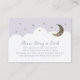 Esta carta de "por favor traga um livro" ou "livros para bebês", fofa estrelas reluzentes de ouro e a lua crescente com nuvens brancas sobre um fundo leve e roxo. O verso apresenta um fundo roxo leve. Personalize-o para as suas necessidades. Você pode encontrar mais produtos correspondentes na minha loja.
