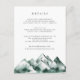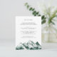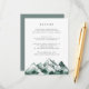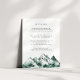 Compartilhe os principais detalhes do casamento com elegância usando este cartão de cercado lindamente projetado da coleção Highland pela Redwood & Vine Design Co. Apresentando montanhas de cor aquática verde-clara suja e texto serif clássico em um fundo branco nítido, é a inserção perfeita para casamentos rústicos, alpinos ou com temas naturais. Ideal para fornecer informações de acomodação, dicas de viagem ou realces de agendamento com estilo.