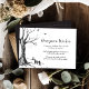Mande seus convidados seus desejos adicionando este cartão de Desejo da Lua de mel junto com seu convite de casamento. O simples design gótico apresenta árvores esboçadas, morcegos e uma teia de aranha. A parte de trás apresenta um design de quadro decorativo branco sobre um fundo preto. Os artigos de casamento coordenados estão disponíveis (vendidos separadamente). Itens correspondentes podem ser encontrados na nossa coleção 'Todos os Halloween'.