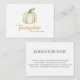 Encoraje os convidados a ajudar a construir a primeira biblioteca do bebê com este doce livro "A Little Pumpkin is on the Way" para o cartão de bebê. Apresentando abóboras de aquarela branca macia e matizes quentes de outono, esta inserção é uma adição ponderada aos convites para chuveiros de bebês. Peça gentilmente um livro favorito em vez de um cartão, criando uma coleção duradoura de histórias cheias de amor e memórias. Coordena-se lindamente com a suíte de chás de fraldas Pumpkin cheio para uma celebração coesa e encantadora.