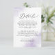 Esta placa de caixa de detalhes púrpura de lavagem aquosa é perfeita para um casamento moderno. O design simples e clássico apresenta uma abertura de cor púrpura de água pastel lavanda com estilo elegante minimalista.