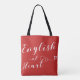 Inglês Na Bolsa de compra Do Coração / Saco De Tote. Seja você inglês ou morando na Inglaterra, tenha família inglesa ou amigos, ou se você só ama tudo a ver com a Inglaterra! Este design de guião na moda apresenta um pouco de coração com a bandeira da Rua George.
