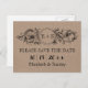 Moldura floral vintage em cartão kraft com iniciais casamento cartão postal Salve a Data. O principal elemento deste design é a bela moldura vintage com suas iniciais em papel de cartão kraft.