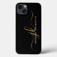 Capa de telefone personalizada moderna de células iPhone na sua escolha de modelos telefônicos com simples e elegante estilo caligrafia, scripts ou monograma e nome em ouro e branco contra um fundo preto editável para um aspecto na moda ou profissional. ALTERAÇÕES: Altere a cor de fundo, escolha um plano de fundo gráfico estilizado ou altere o estilo, a cor, o tamanho e a posição da fonte de texto clicando em PERSONALIZAR MAIS na parte inferior da seção PERSONALIZAR para um design personalizado. ASSISTÊNCIA: para obter ajuda com a modificação ou personalização do design, alteração de cor, redimensionamento ou transferência do design para outro produto, entre em contato com o designer ANTES DE ENCOMENDAR através da guia MENSAGEM de Bate-papo Zazzle abaixo ou envie um email para makeitaboutyoustore@gmail.com.