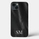 Capas de iphone de Iniciais de Monograma Mínimo Personalizado Elegante. Apresenta um fundo de imagem falsa de couro.
